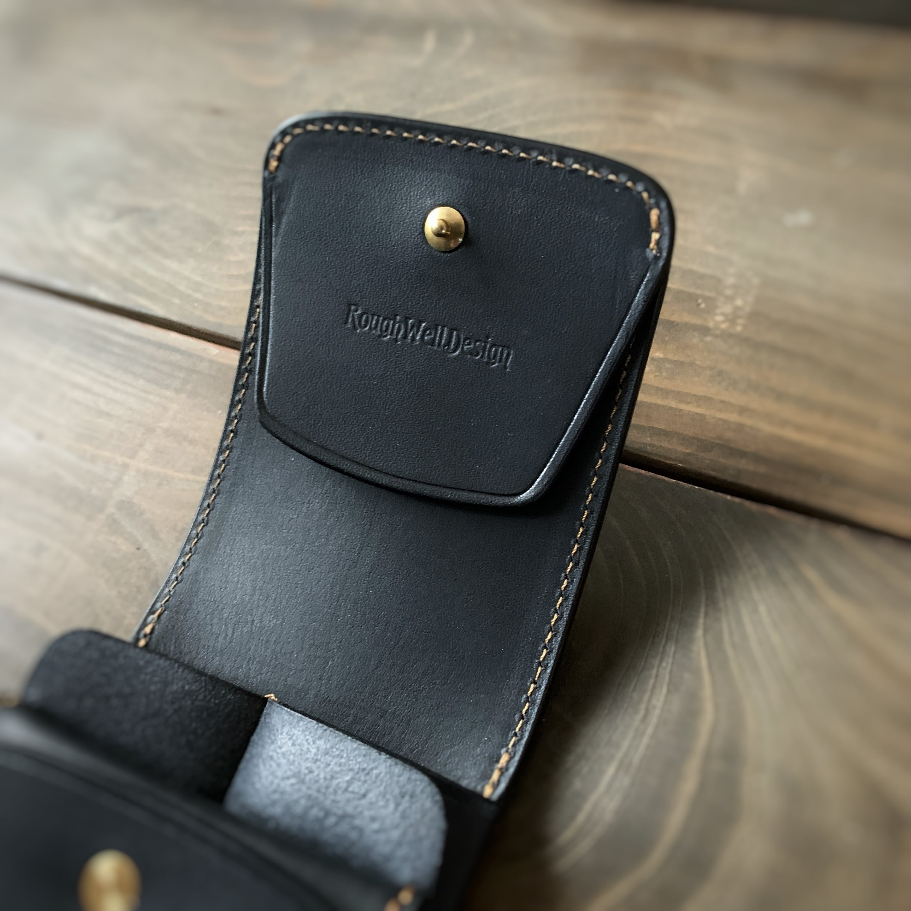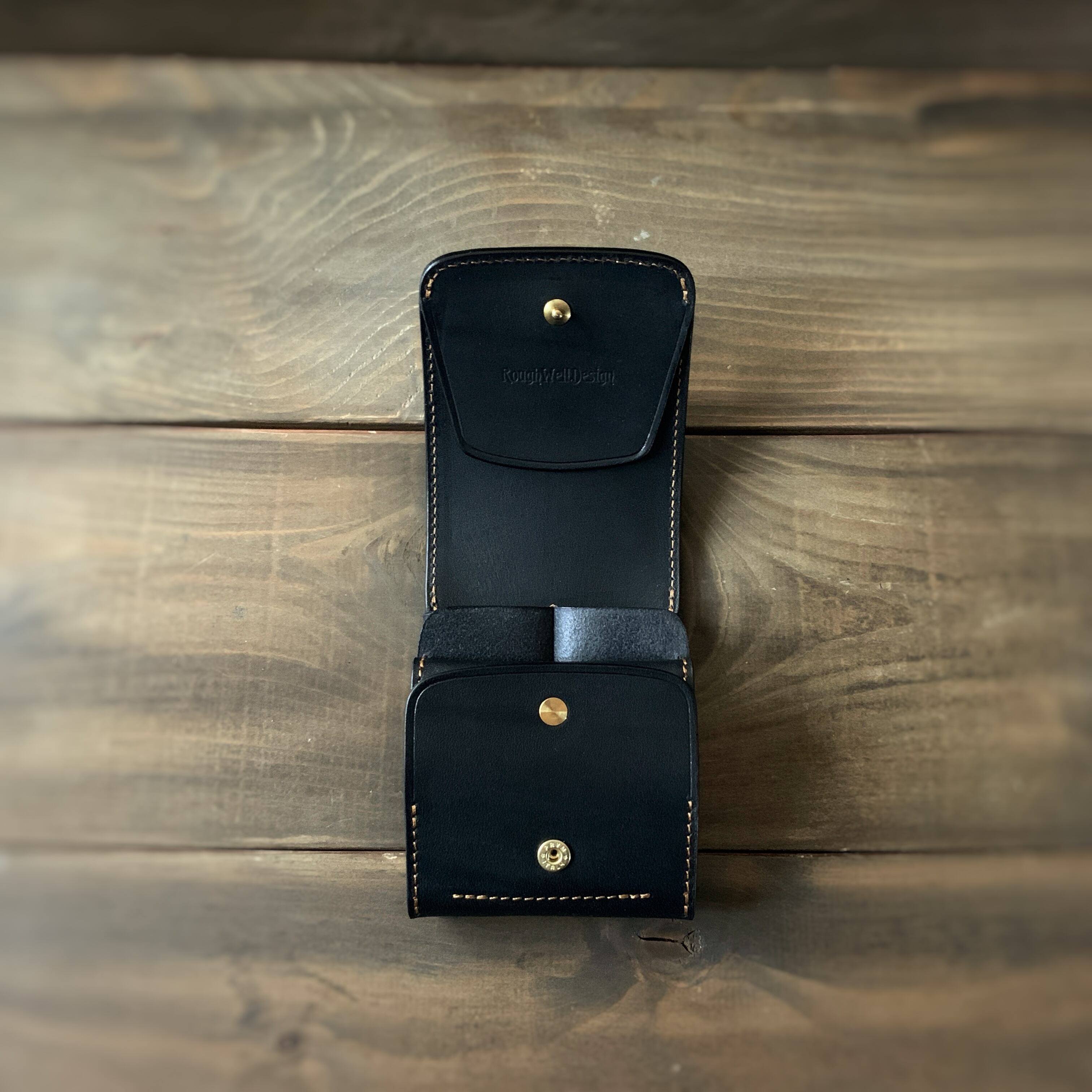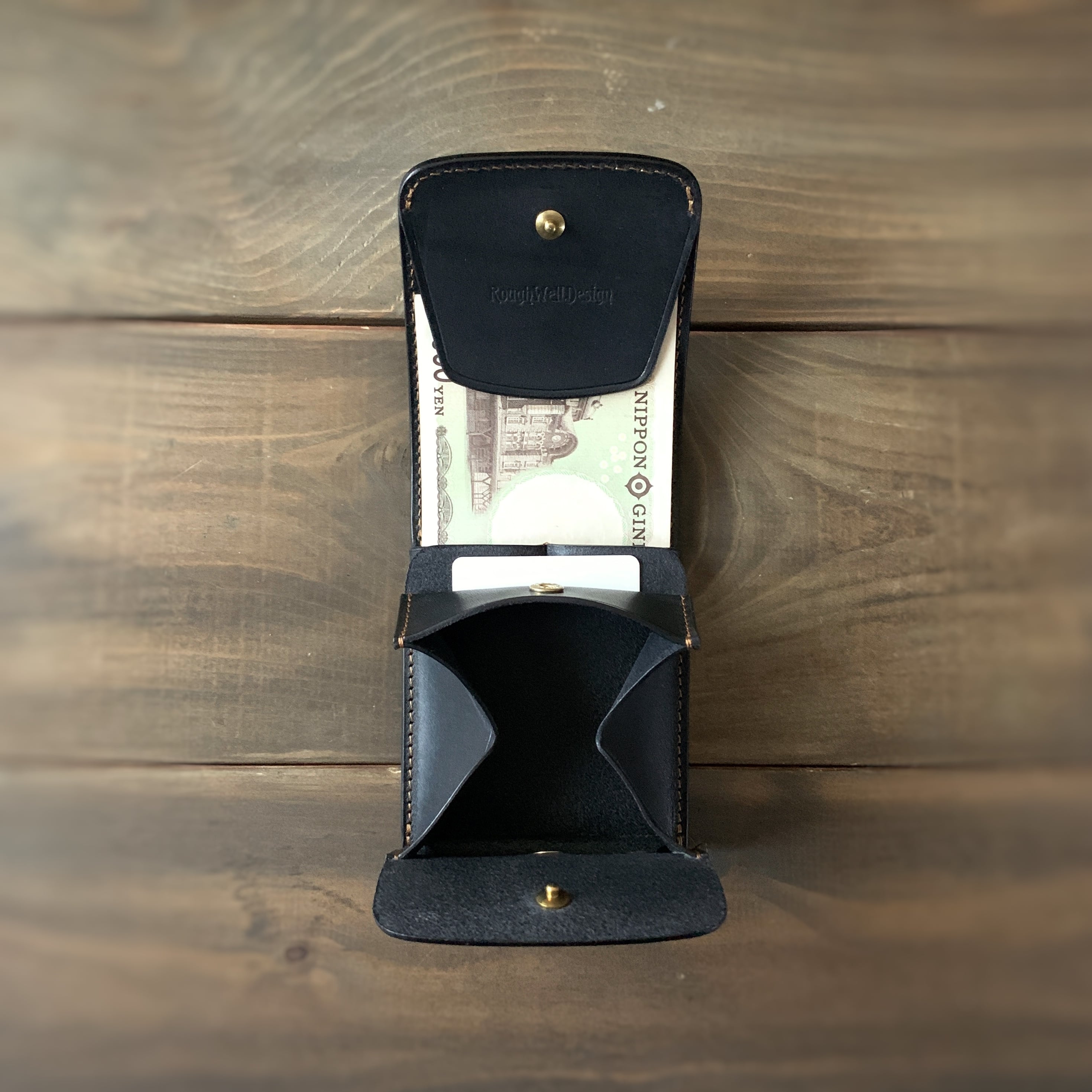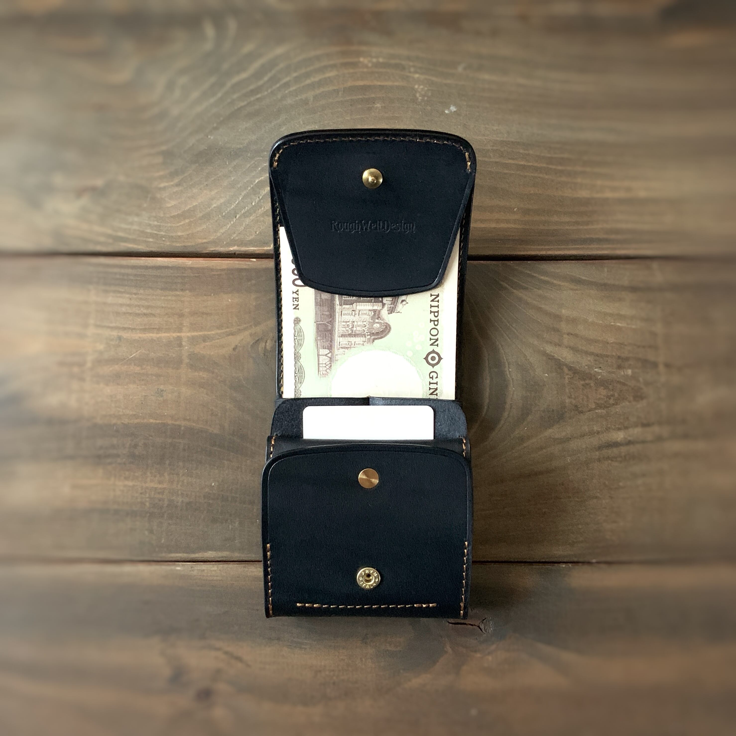 左右の利き手をとわない縦型コンパクトウォレットになります。